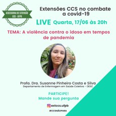 A Assessoria de Extensão do CCS apresenta mais uma LIVE sobre o tema: A VIOLÊNCIA CONTRA O IDOSO EM TEMPOS DE PANDEMIA, com a profa. Dra. Susanne Pinheiro Costa e Silva.