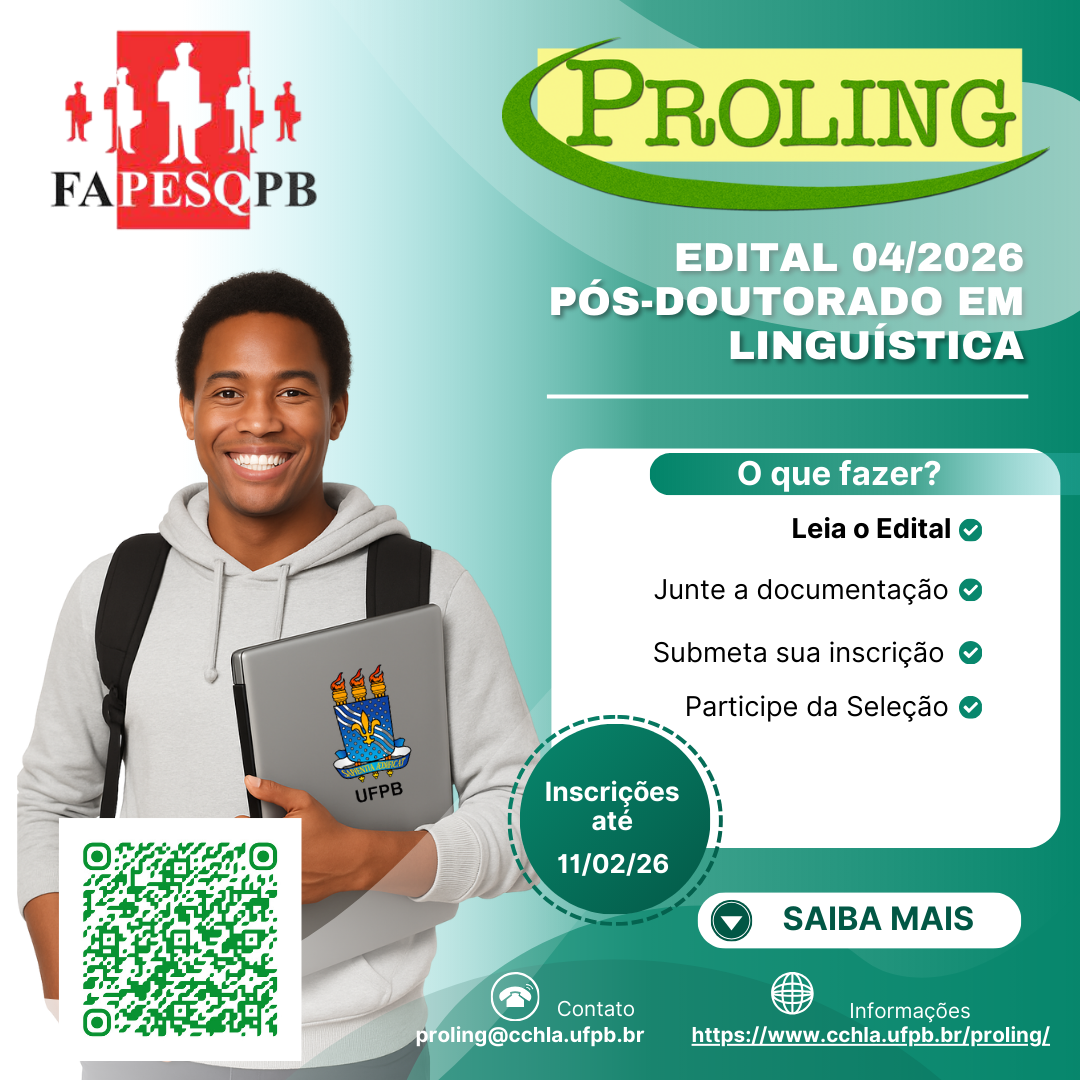 O Programa de Pós-Graduação em Linguística (PROLING) da Universidade Federal da Paraíba (UFPB), torna público o presente Edital para abertura…