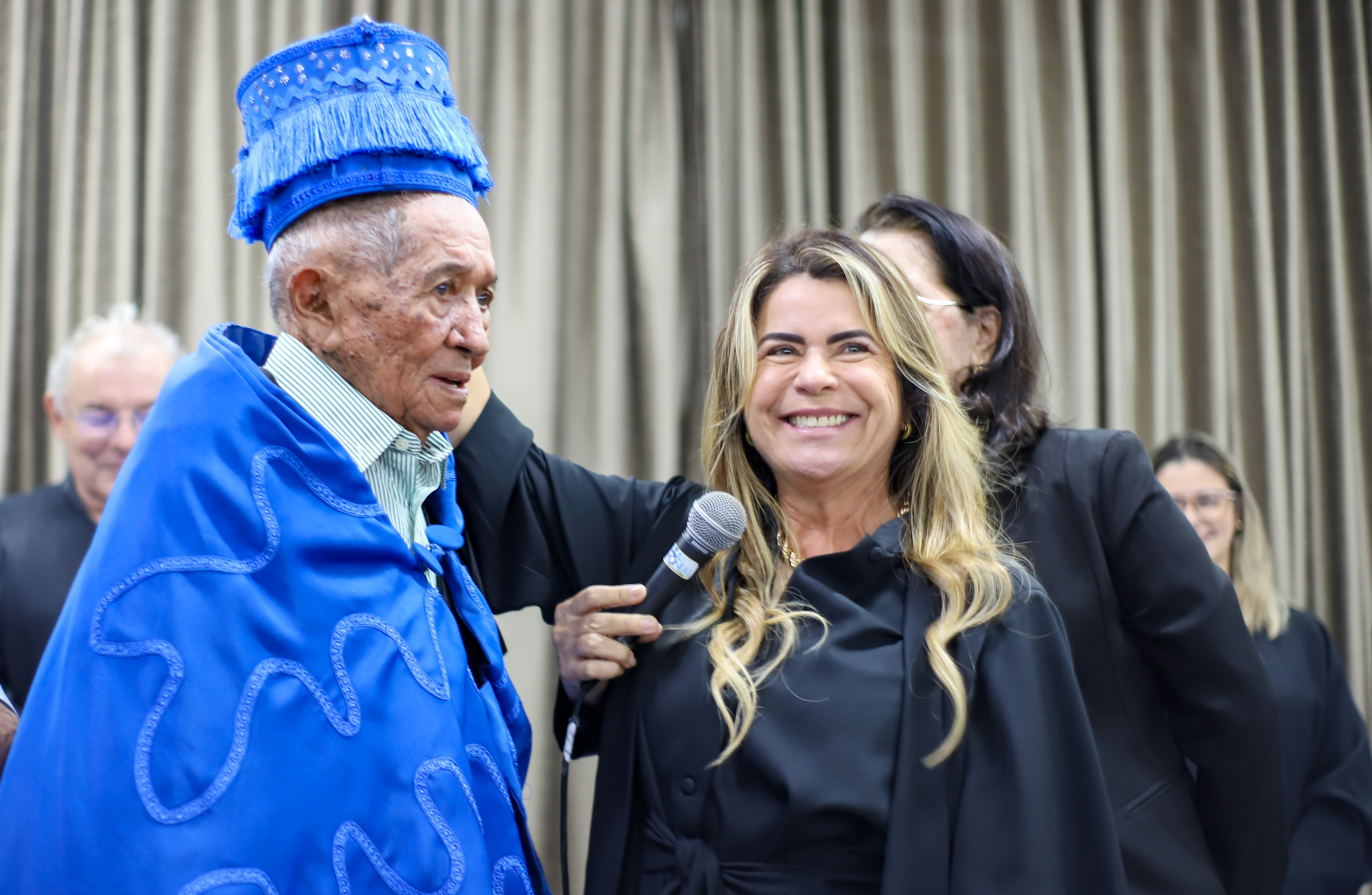 O poeta e artesão José Nunes Filho, conhecido popularmente como Zé de Cazuza, de 94 anos, recebeu, na noite desta terça-feira (27), o título de Doutor Honoris Causa da Universidade Federal da Paraíba (UFPB). A solenidade, ocorrida no auditório da Reitoria, foi presidida pela Vice-reitora Liana Filgueira e prestigiada por artistas, professores, admiradores, familiares e amigos do homenageado, que é natural da cidade de Monteiro, no Cariri da Paraíba.