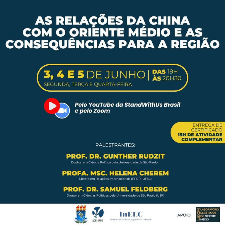 InELC promove o minicurso “As relações da China com o Oriente Médio e as Consequências Para a Região”