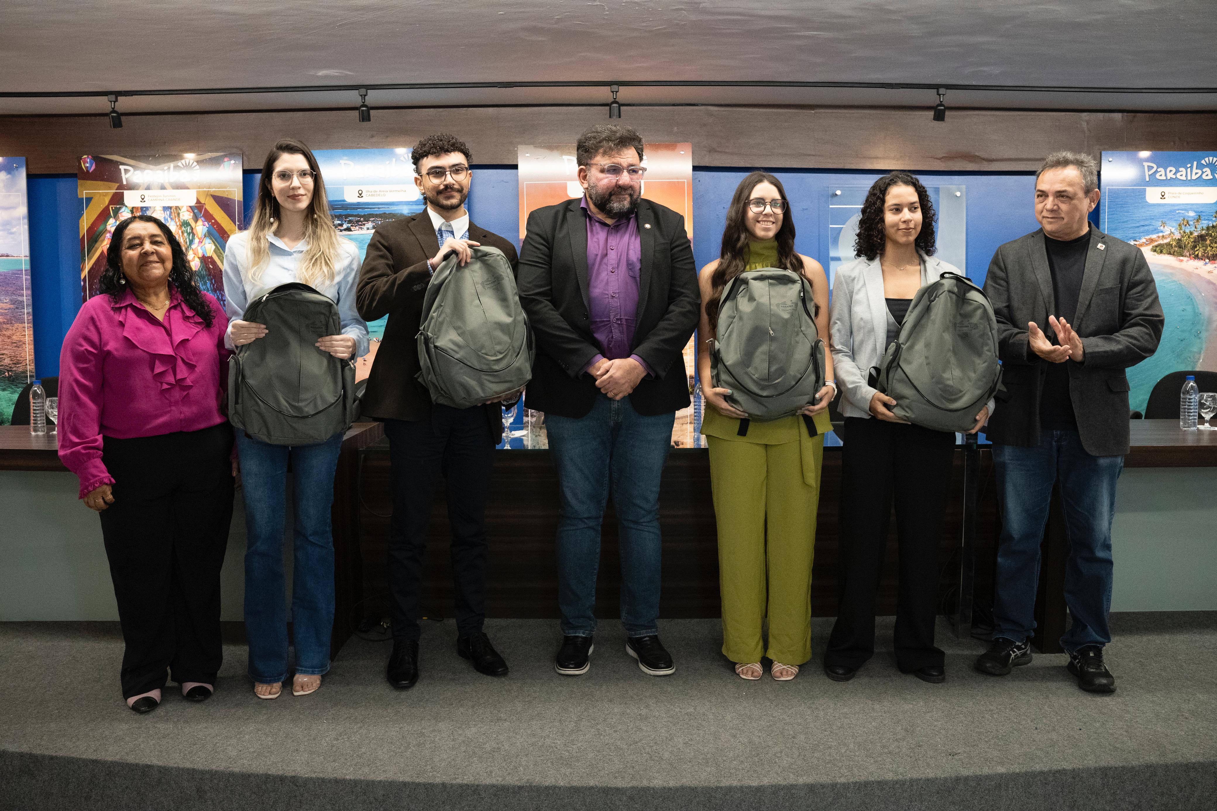 Estavam presentes no evento os estudantes contemplados com as bolsas de estudo, o secretário da SECTIES, Cláudio Furtado, o presidente da Fapesq, Rangel Júnior, a Diretora de Relações Interinstitucionais da ACI - UFPB, e coordenadora do programa na universidade, Ana Berenice Peres Martorelli, além dos representantes das outras IES contempladas.