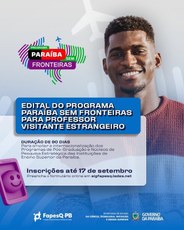 O programa Paraíba sem Fronteiras, iniciativa do Governo da Paraíba e executado por meio da Secretaria de Estado da Ciência, Tecnologia, Inovação e Ensino Superior (SECTIES) e da Fundação de Apoio à Pesquisa da Paraíba (Fapesq), lançou um novo edital para selecionar Professores Visitantes Estrangeiros, que atuam e residem no exterior.