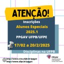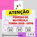 Matrículas e Oferta de disciplinas do PPGAV 2026.1 (Datas definidas para Início das aulas) por PPGAV publicado 04/02/2026 08h59 Notícia