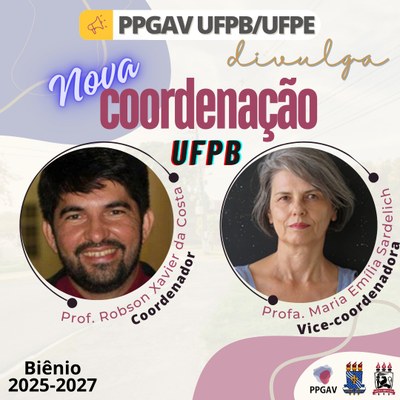 Assumem a gestão do PPGAV UFPB/UFPE, no âmbito da UFPB, os professores Dr. Robson Xavier da Costa (Coordenador) e Dra. Maria Emília Sardelich (Vice-Coordenadora) para o biênio 2025-2027.