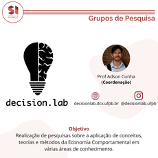 O decision.lab é coordenado pelo Prof Adson Cunha e tem como principal objetivo a realização de pesquisas sobre a aplicação de conceitos, teorias e métodos da Economia Comportamental em várias áreas de conhecimento.
