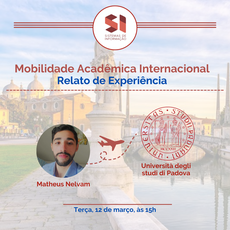 Nosso discente Matheus Nelvam passou por essa experiência na Università degli studi di Padova, na Itália. Pra falar um pouco sobre isso e tirar dúvidas de quem tem interesse em fazer algo parecido, Matheus estará disponível nesta terça, dia 12, às 15h, no Google Meet [aqui].
