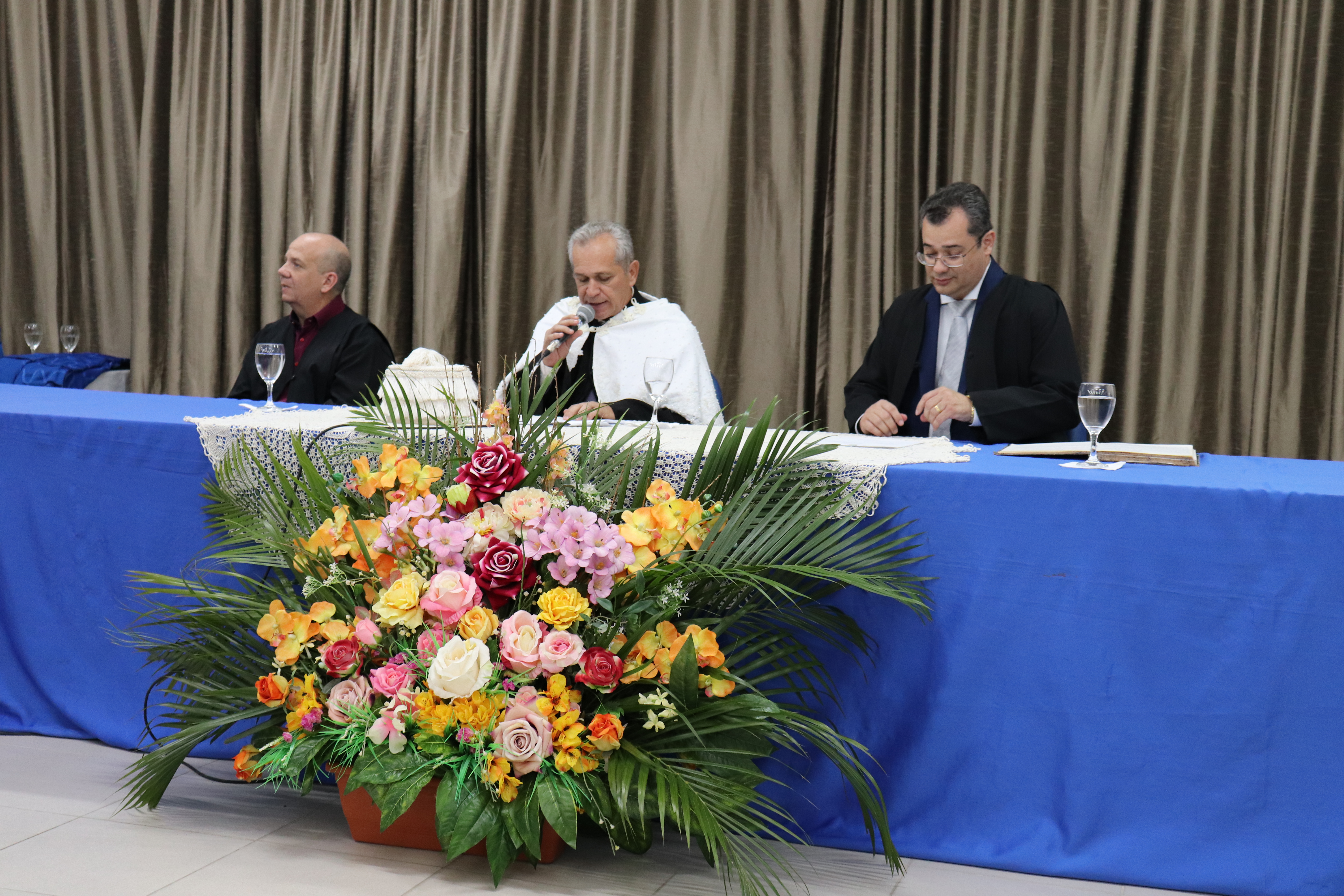 A mesa de honra da solenidade foi composta pelo Reitor da UFPB, professor Valdiney Gouveia, pelo diretor do CCSA, professor Aldo Leonardo Cunha Callado, e pelo coordenador da Secretaria dos Órgãos Deliberativos da Administração Superior (SODS), professor José Neto Barreto Júnior. O homenageado, professor Guilherme de Albuquerque Cavalcanti, foi convidado a integrar a mesa junto com sua esposa, a também professora da UFPB Mercedes Cavalcanti, e seu filho, Henrique Cavalcanti. Além deles, os docentes Ademário Félix de Araújo Filho e Alysson André Cabral também foram chamados a compor a mesa.