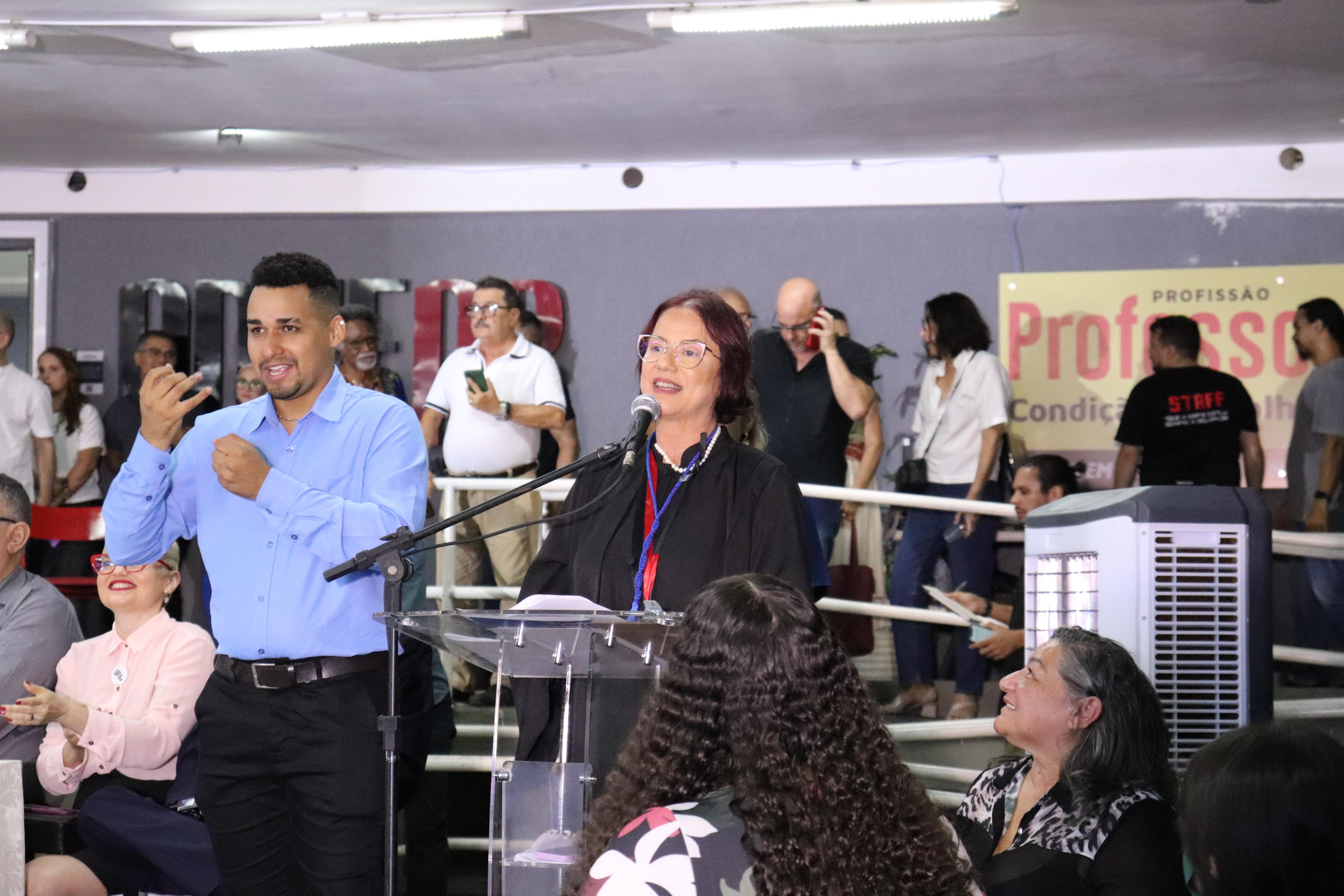 Intérpretes fizeram a tradução de todo o evento para Língua Brasileira de Sinais (Libras), um feito inédito em solenidades do gênero na UFPB e que integra o compromisso com o lema ‘Inovação com Inclusão’, que permeou a campanha vitoriosa das Reitoras durante a consulta universitária, realizada em abril deste ano.