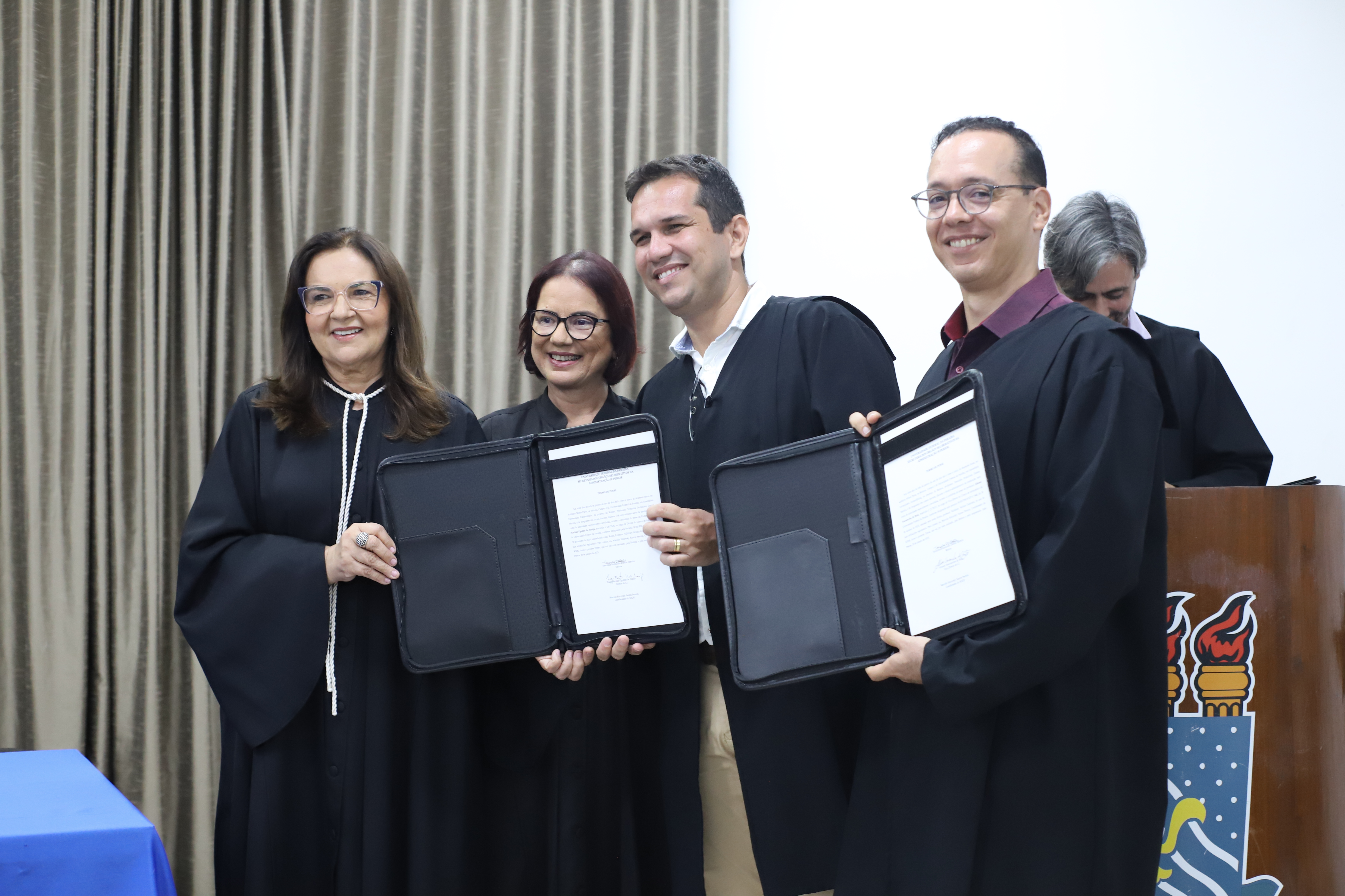 Fizeram parte da mesa da solenidade, presidida pela Reitora Terezinha Domiciano, a Vice-Reitora Mônica Nóbrega; o Pró-Reitor de Administração (Proplan) George Beltrão – representando os ex-diretores de Centro –; o Procurador-Chefe da Procuradoria Federal na UFPB, Flávio Pereira; o coordenador dos Órgãos Deliberativos da Administração Superior (Sods), professor Marcelo Sitcovsky; a Vice-Presidente do Sindicato dos Docentes da UFPB (Adufpb), Rita Lobo; e o Coordenador geral do Sindicato dos Trabalhadores em Ensino Superior do Estado da Paraíba (Sintespb), Valdevino Neto.